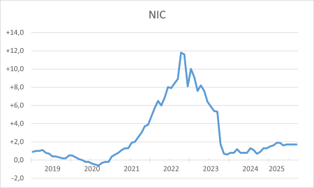 A settembre 2025 l’indice del clima di fiducia delle imprese è aumentato da 93,6 a 93,7. La fiducia è aumentata nelle costruzioni e nei servizi di mercato mentre è rimasta invariata nella manifattura ed è diminuita nel commercio al dettaglio. (Link) |