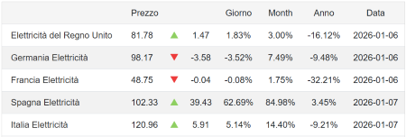 Trading Economics – Prezzo dell’elettricità