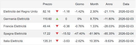 Trading Economics – Prezzo dell’elettricità