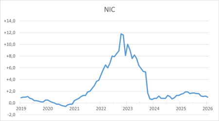 A gennaio 2026 l’indice del clima di fiducia delle imprese è aumentato da 96,6 a 97,6. La fiducia è migliorata nei sevizi di mercato e nella manifattura, mentre è diminuita nelle costruzioni e nel commercio al dettaglio. (Link) |
