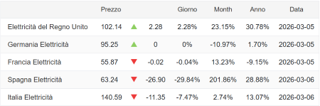 Trading Economics – Prezzo dell’elettricità